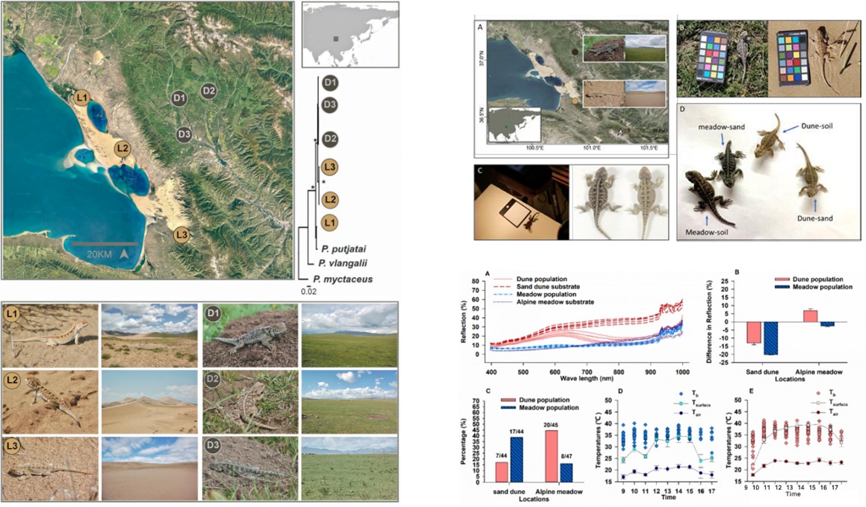 北京易科泰與中科院動(dòng)物所合作,利用Specim IQ高光譜成像儀及ThermoRGB成像系統(tǒng),用于蜥蜴背部顏色分化對(duì)偽裝和體溫調(diào)節(jié)的影響研究,相關(guān)研究成果以Genetically encoded lizard color divergence for camouflage and thermoregulation為題發(fā)表在《Molecular Biology and Evolution》上。(2024)