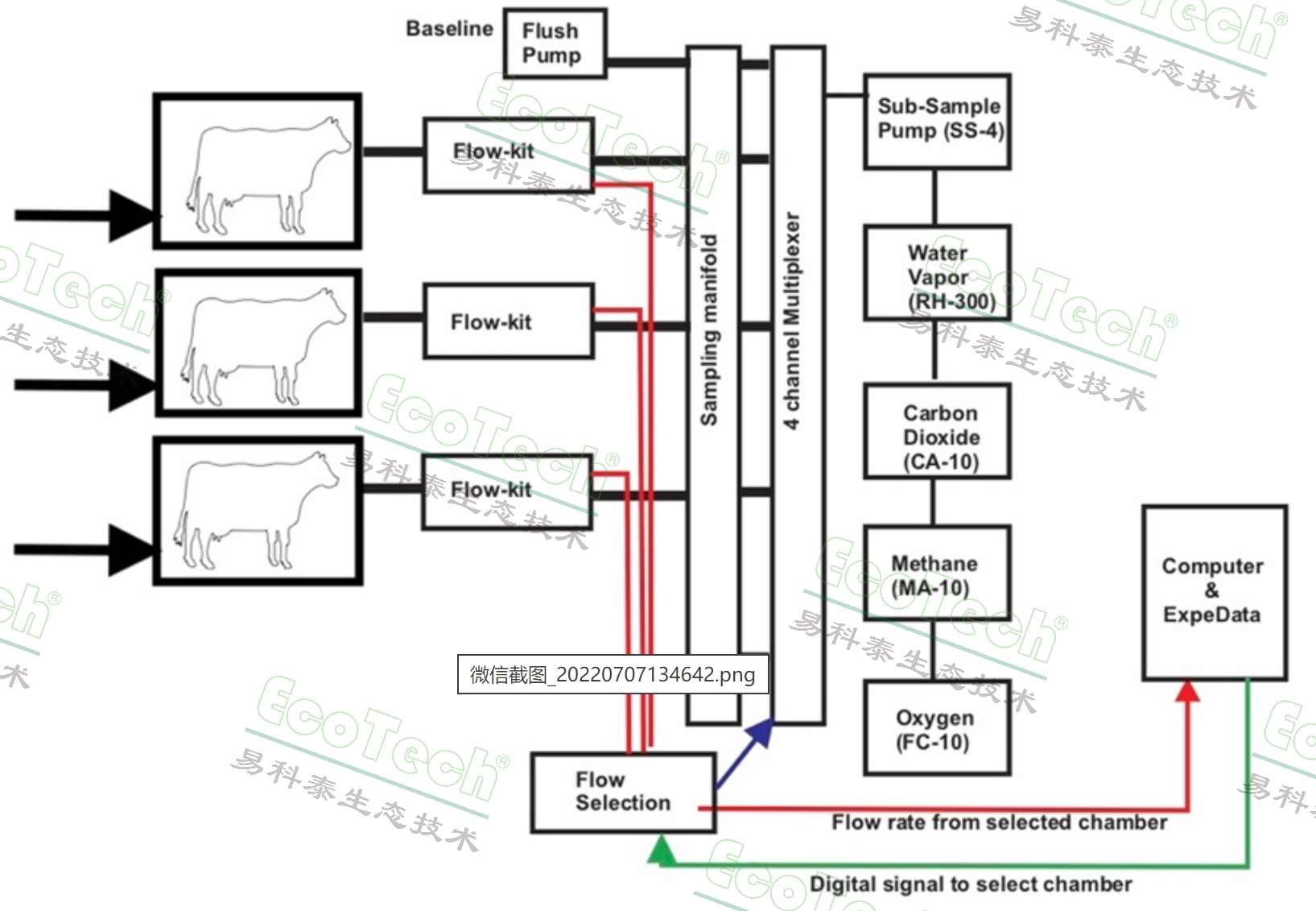 3)標(biāo)配CO2O2分析,用于測(cè)量耗氧率和CO2產(chǎn)生率并據(jù)此分析不同條件能量代謝水平;可選配甲烷分析儀(反芻動(dòng)物甲烷排放測(cè)量)、水汽分析儀等