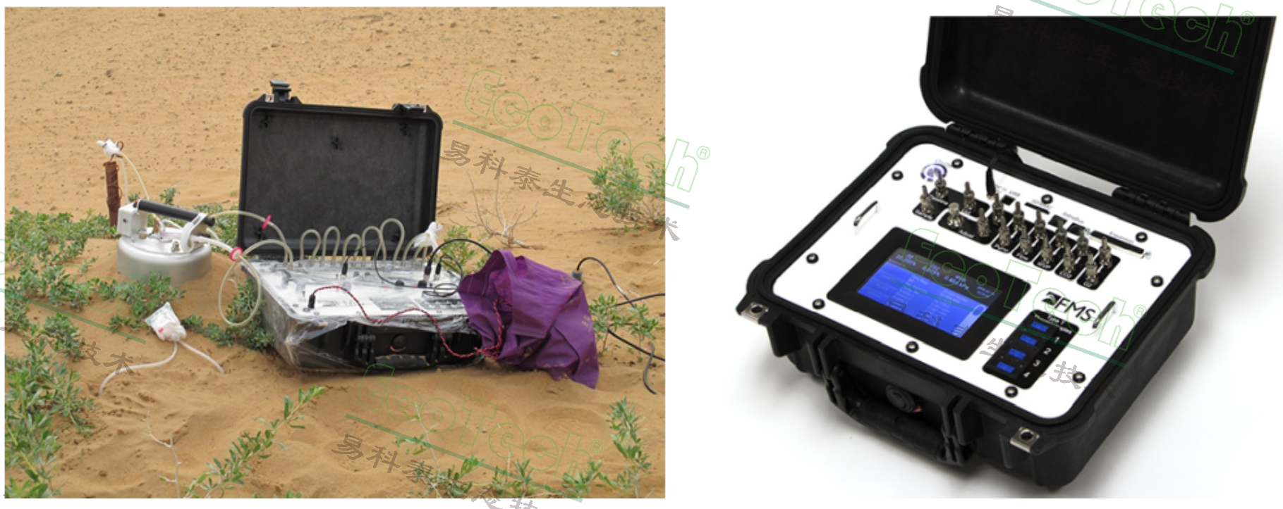 ØSoilBox-FMS實際上為雙通道測量(有一個Basline通道),通過選配透明呼吸室和非透明呼吸室,可測量監(jiān)測生態(tài)系統(tǒng)凈光合、凈呼吸等;