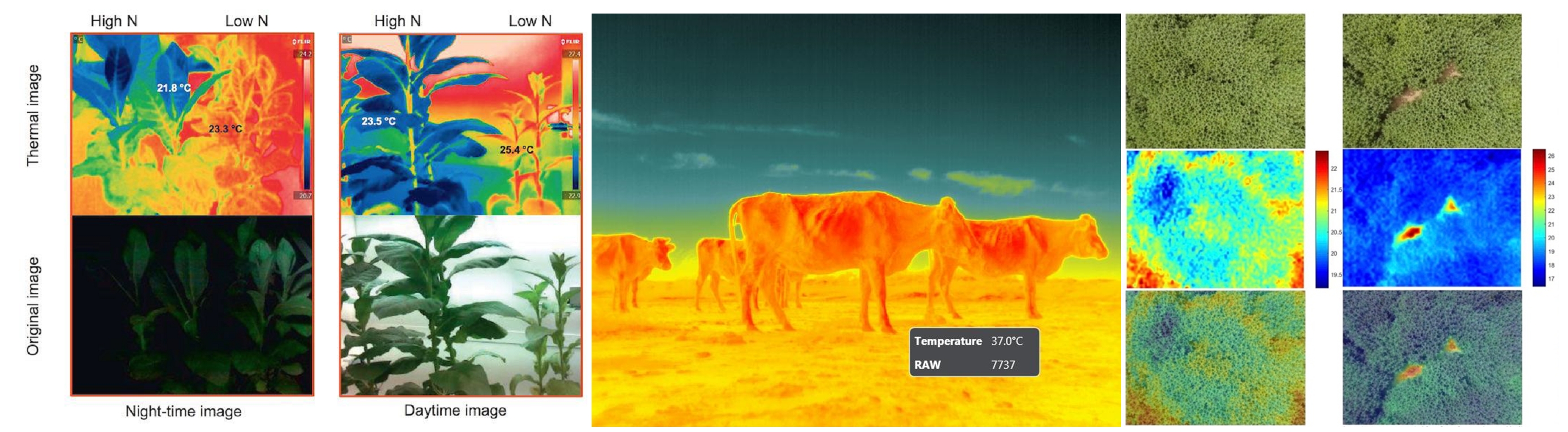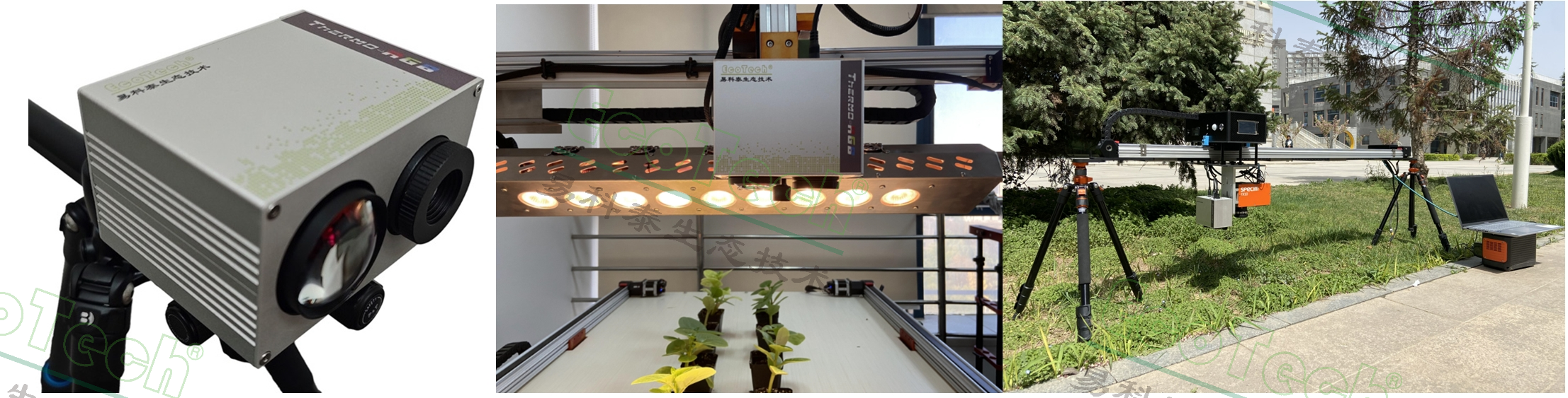 紅外熱成像技術(shù)已經(jīng)廣泛應(yīng)用于植物表型分析(如氣孔動(dòng)態(tài)等)、動(dòng)物生理生態(tài)、生物醫(yī)學(xué)測(cè)量檢測(cè)(包括體檢等)、智慧牧場(chǎng)、生態(tài)觀測(cè)等各領(lǐng)域。但在實(shí)際應(yīng)用中,紅外熱成像存在分辨率低、影像不清楚、很難與背景或環(huán)境區(qū)分等問題,特別是對(duì)與環(huán)境溫度近似的目標(biāo)如植物、昆蟲等,單靠紅外熱成像很難精確提取目標(biāo)信息和“影像”并進(jìn)一步進(jìn)行ROI選區(qū)分析。Thermo-RGB是基于易科泰公司研發(fā)的紅外熱成像與RGB成像融合分析技術(shù)而開發(fā)的一體式成像儀,有效融合了紅外熱成像的熱輻射信息/溫度信息和RGB成像的顏色信息和高分辨率優(yōu)勢(shì),克服了紅外熱成像分辨率低、不清晰、難以進(jìn)行目標(biāo)提取/圖像分割等缺點(diǎn),可以方便地進(jìn)行圖像分割處理、提取清晰的圖像信息,并進(jìn)一步精準(zhǔn)運(yùn)行ROI選區(qū)分析??蓱?yīng)用于植物表型分析、智慧農(nóng)業(yè)、種質(zhì)資源檢測(cè)、近地遙感與無人機(jī)遙感、生物醫(yī)學(xué)檢測(cè)、畜禽遙感測(cè)量表型分析等。