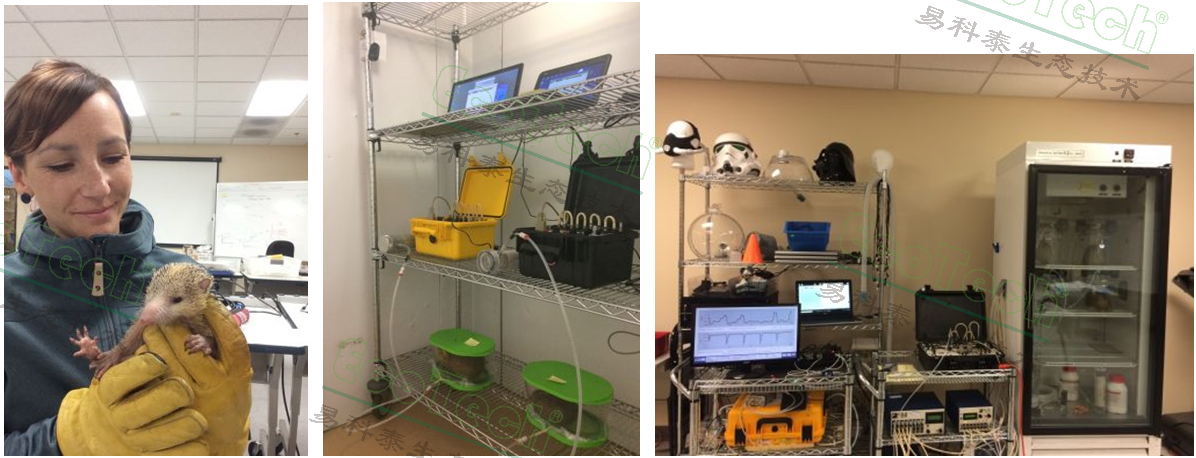 從左至右:Rebecca Oelkrug博士研究的馬島猬(T.ecaudatus)、FOXBOX定制馬島猬呼吸代謝儀、FMS搭建的呼吸穩(wěn)定同位素示蹤能量代謝系統(tǒng)