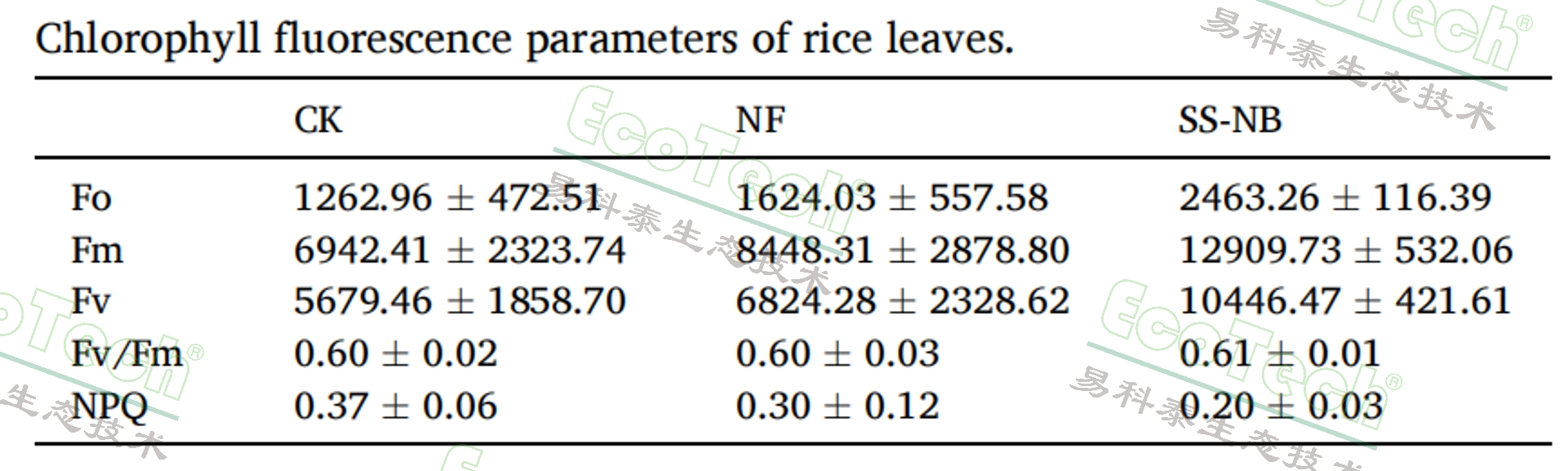 使用易科泰提供的FluorCam葉綠素?zé)晒獬上裣到y(tǒng)獲得的不同處理的水稻葉片葉綠素?zé)晒鈪?shù)