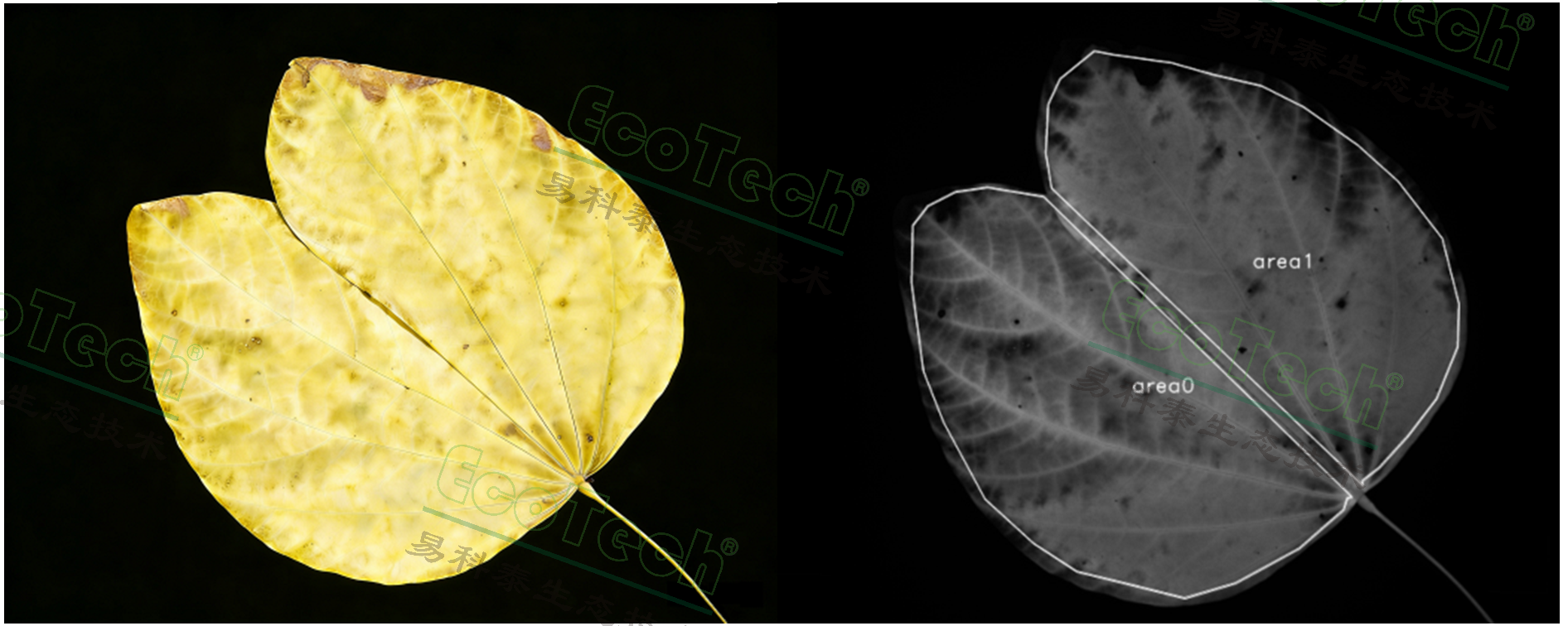 左圖:葉片RGB圖;右圖:葉片ROI選區(qū)