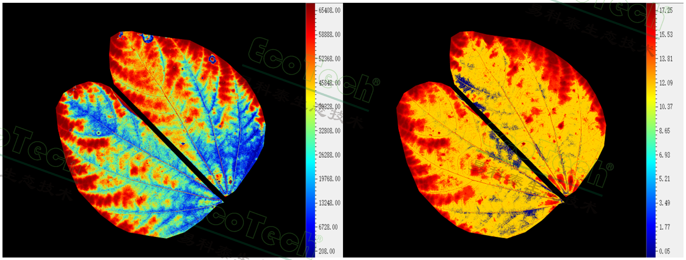葉綠素?zé)晒鈪?shù) 左圖Rfd;右圖:NPQ